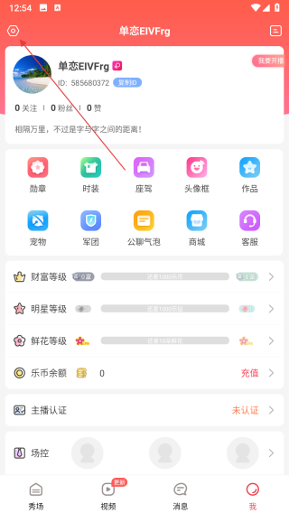 1、打開樂嗨直播APP,在個人頁面中,點(diǎn)擊左上角的設(shè)置圖標(biāo),進(jìn)入設(shè)置界面。