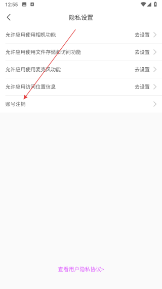 3、進(jìn)入隱私設(shè)置頁面后,點(diǎn)擊賬號注銷選項(xiàng)。