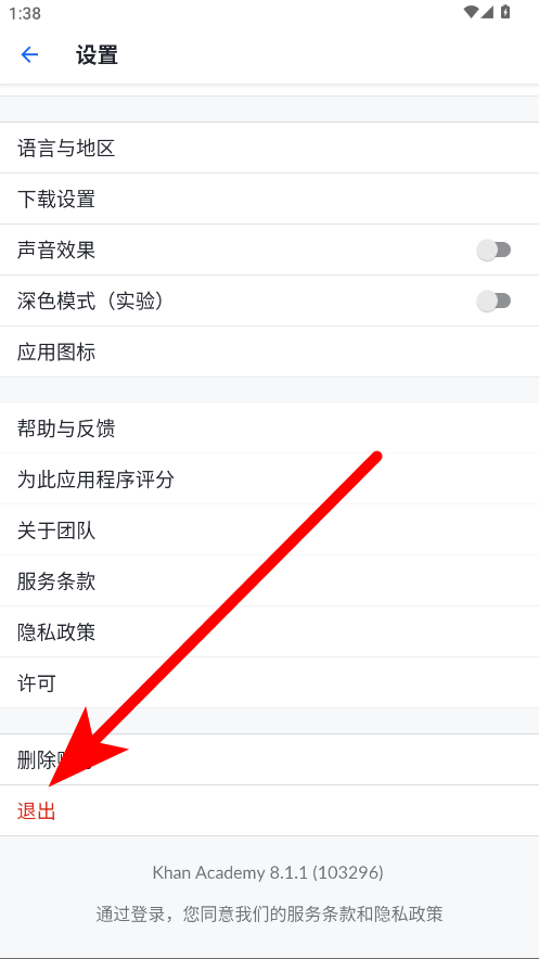 2、在設(shè)置頁面,向下滑動找到退出選項,點(diǎn)擊退出。