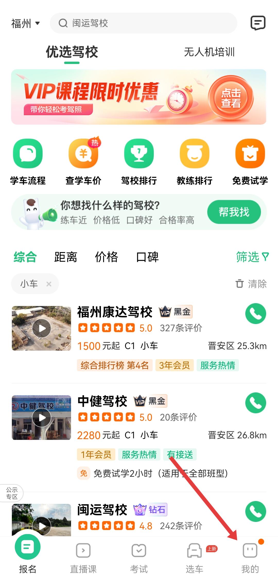 1、打開駕校一點通APP,點擊底部導航欄最右側(cè)的我的,進入個人中心頁面。