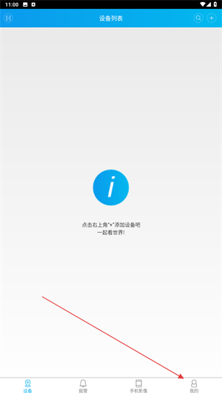 1、啟動(dòng)監(jiān)控眼的應(yīng)用,進(jìn)入首頁點(diǎn)擊右下角我的圖標(biāo)。