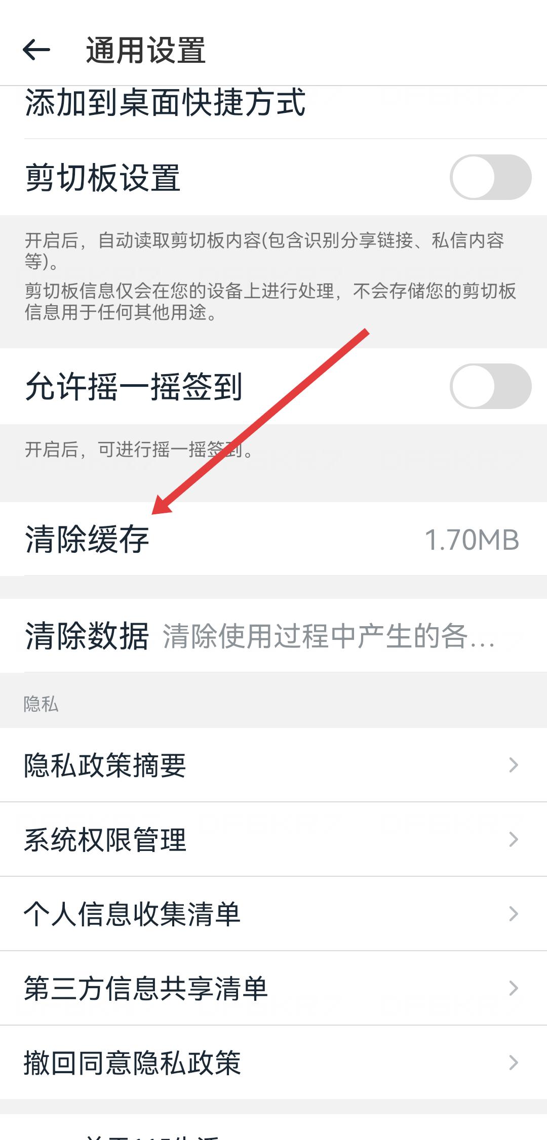 2、在通用設(shè)置頁面中,點(diǎn)擊清除緩存的選項(xiàng),調(diào)出存儲(chǔ)權(quán)限授權(quán)彈窗。