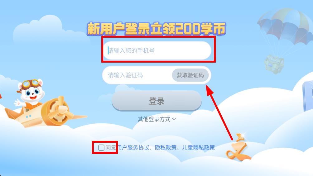 1、打開(kāi)小學(xué)寶應(yīng)用進(jìn)入登錄界面,在手機(jī)號(hào)輸入框內(nèi)準(zhǔn)確填入您的手機(jī)號(hào),獲取驗(yàn)證碼填入輸入框中。