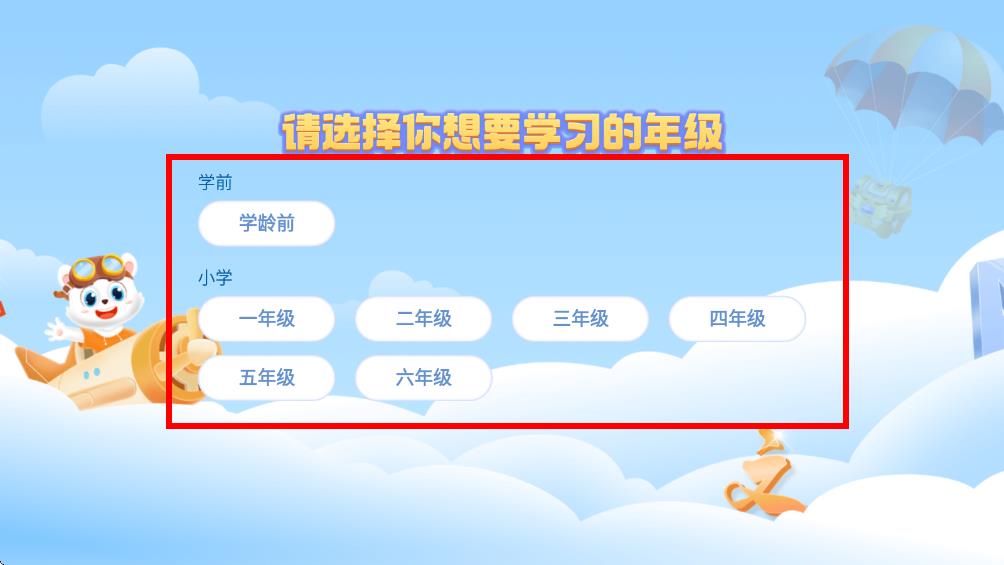 3、成功登錄后在彈出的請(qǐng)選擇你想要學(xué)習(xí)的年級(jí),根據(jù)自身需求選擇階段的對(duì)應(yīng)年級(jí),即可進(jìn)入應(yīng)用開(kāi)始使用。