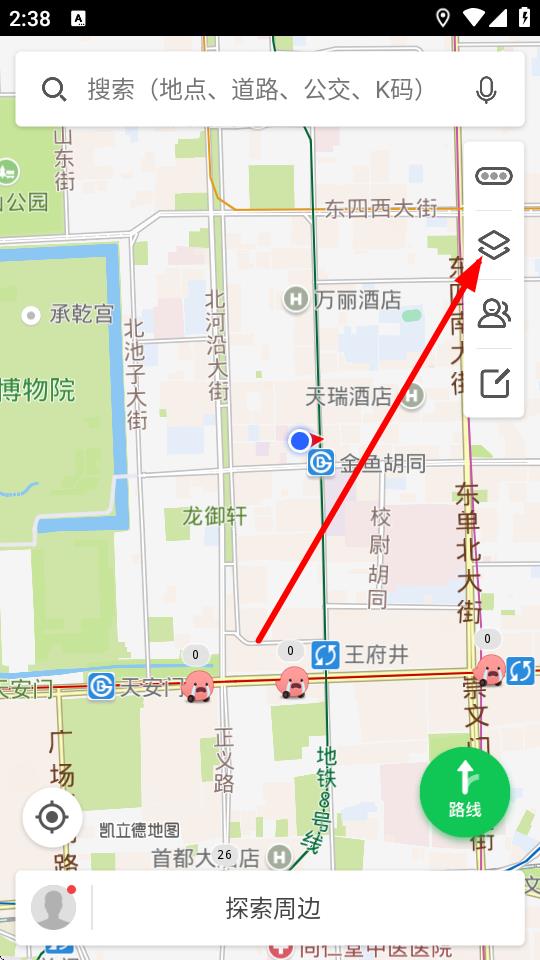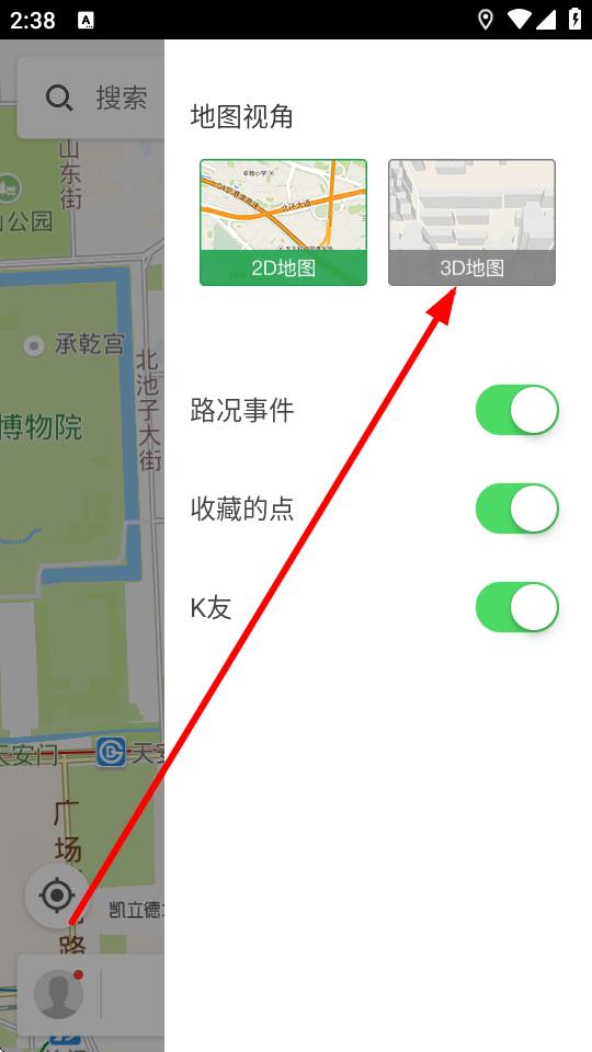 1、打開凱立德導(dǎo)航應(yīng)用,在主界面右側(cè)找到并點(diǎn)擊地圖樣式圖標(biāo)。