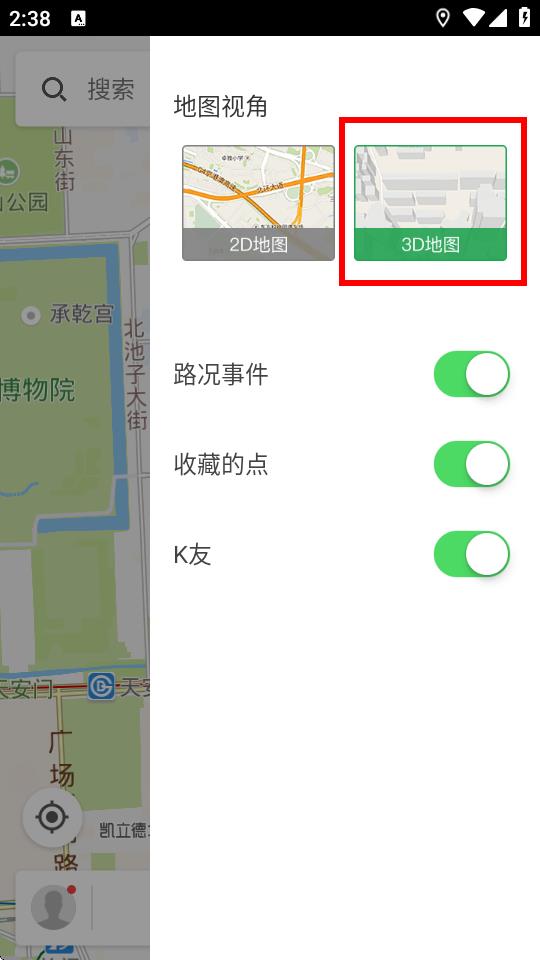 3、在地圖視角中,點(diǎn)擊3D地圖選項(xiàng)框。