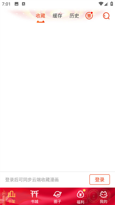 2、隨后,我們進(jìn)入到軟件之后,可以在【書架】頁面看到之前自己收藏的漫畫書本,十分的便利;