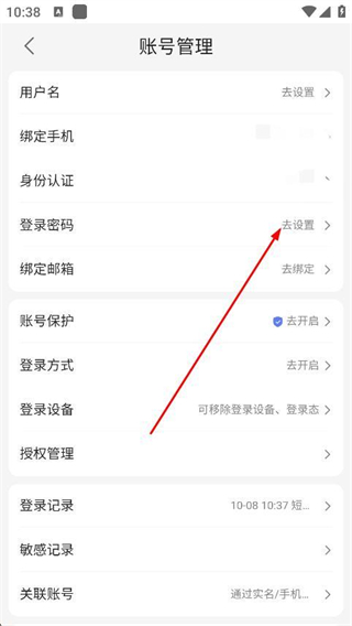 4、找到登錄密碼選項并點擊右側(cè)去設置,按提示完成密碼設置。