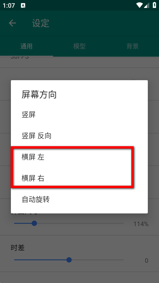 4、在彈出的屏幕方向選擇菜單中,點(diǎn)擊橫屏左或橫屏右選項(xiàng),即可將屏幕更改為橫屏模式。