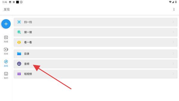 2、在發(fā)現(xiàn)的頁(yè)面中,找到并點(diǎn)擊音頻的選項(xiàng)。