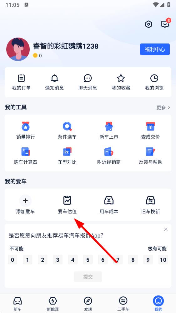 2、在我的頁面,下滑找到我的愛車板塊,點擊其中的愛車估值選項。