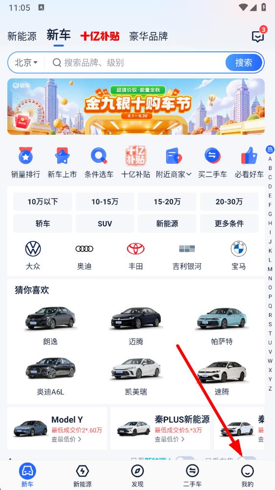 1、打開易車汽車報價app,在首頁點擊底部導航欄最右側我的按鈕,進入個人頁面。