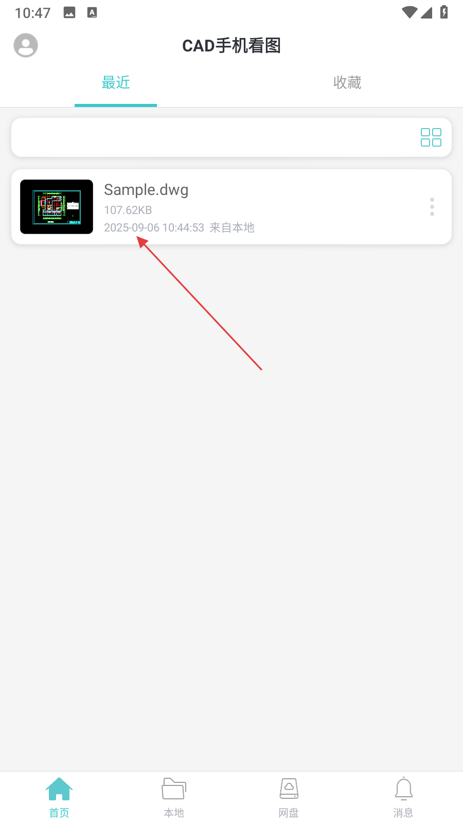 1、打開CAD手機看圖應(yīng)用,在最近頁面點擊需要查看的CAD圖紙,進入圖紙查看界面。