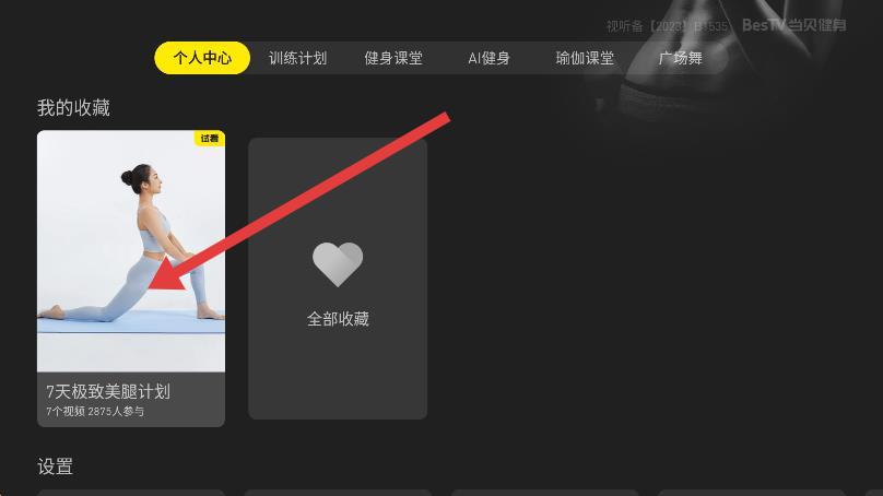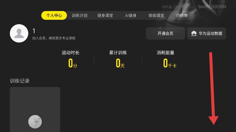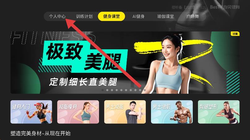 1、打開當(dāng)貝健身,點(diǎn)擊頂部導(dǎo)航欄中的個(gè)人中心選項(xiàng)。