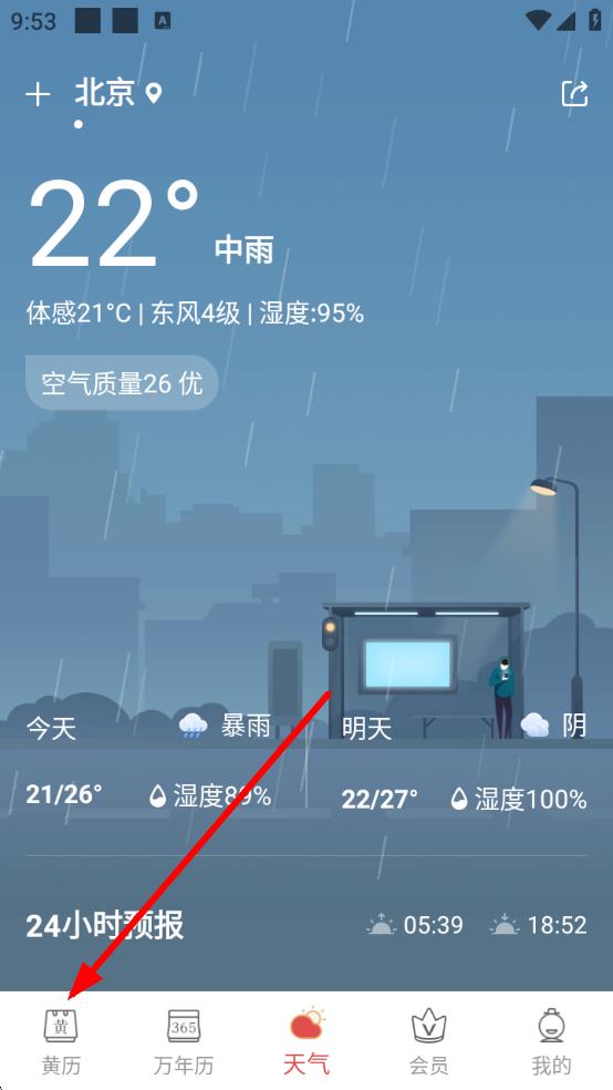 1、打開老黃歷應(yīng)用,點(diǎn)擊底部導(dǎo)航欄中的黃歷選項(xiàng),進(jìn)入黃歷主界面。