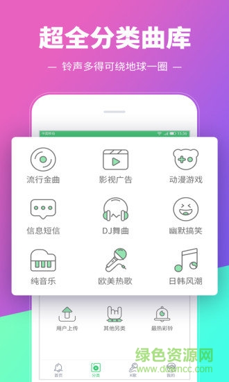 2.精細鈴聲分類,原創(chuàng),翻唱,惡搞,影視,動漫,抖音網(wǎng)紅熱歌,流行金曲,影視熱曲,動漫游戲,短信鬧鈴,DJ舞曲,搞笑另類,網(wǎng)絡神曲,傷感語錄,網(wǎng)友上傳等