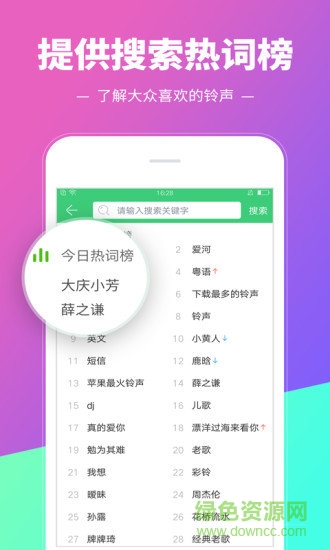 提供搜索熱詞榜,了解大眾喜歡的鈴聲