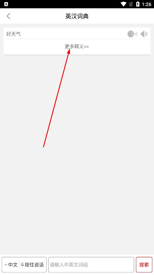 2、進(jìn)入英漢詞典后,點(diǎn)擊更多釋義。
