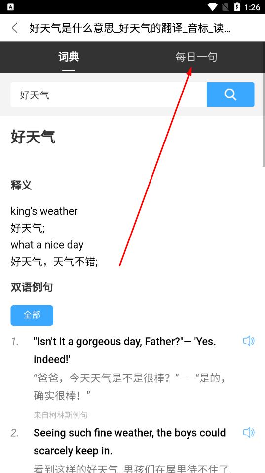 3、進(jìn)入釋義界面后,點(diǎn)擊每日一句。
