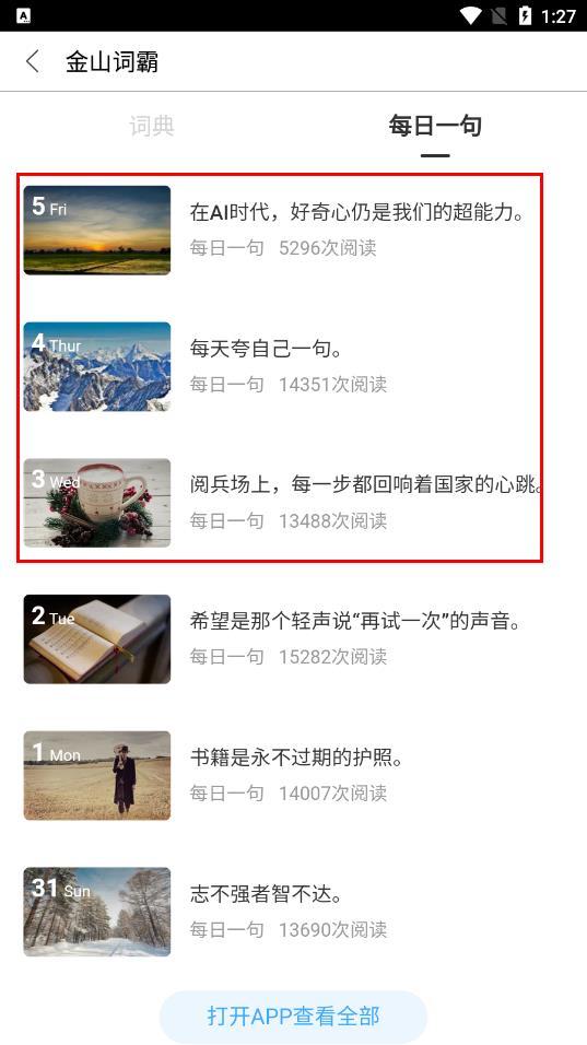 4、進(jìn)入每日一句詳情頁(yè),點(diǎn)擊感興趣的進(jìn)入。