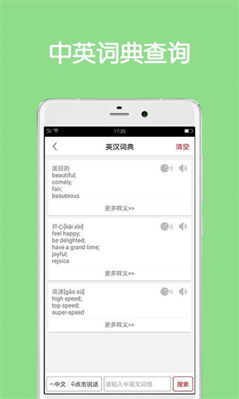 1.同聲翻譯:你說(shuō)中文,她說(shuō)英文,您輸入英文她說(shuō)中文,絕對(duì)是你學(xué)習(xí)英語(yǔ),和老外交流OR做生意OR出國(guó)旅行,查詢單詞句子之神器。