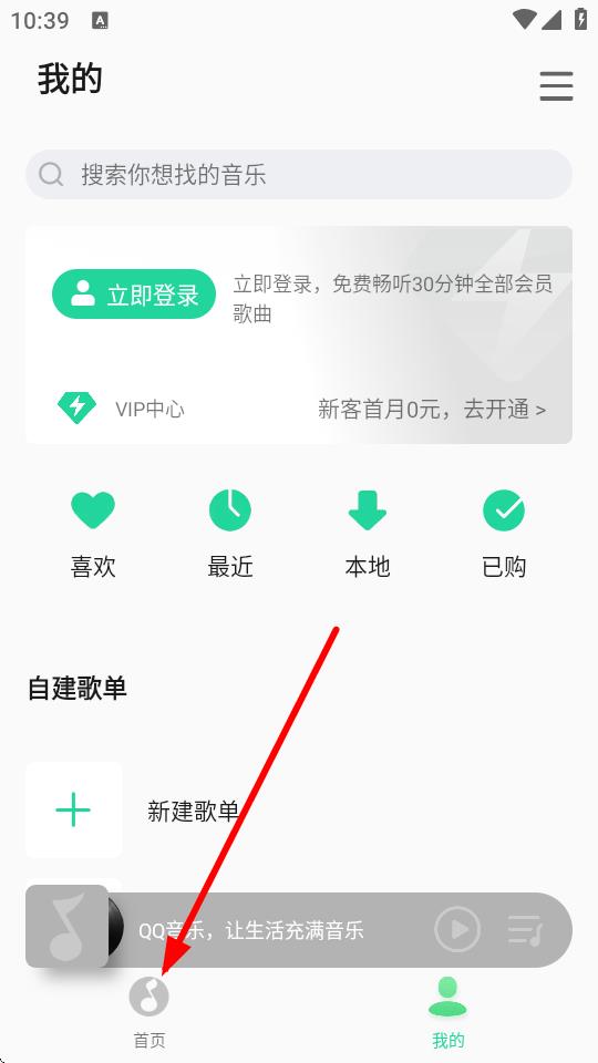 1、打開小米音樂應(yīng)用,點(diǎn)擊底部導(dǎo)航欄中的首頁。