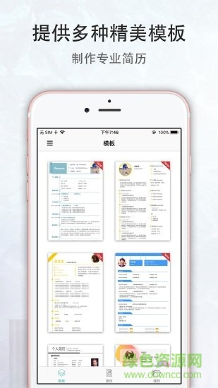 簡(jiǎn)歷速做app是一款強(qiáng)大的手機(jī)簡(jiǎn)歷制作工具,該軟件針對(duì)各行各業(yè)都有不同的精美模板,內(nèi)容完善專業(yè)性強(qiáng),輕輕松松打造一份完美的簡(jiǎn)歷,需要的朋友快來綠色資源網(wǎng)下載吧!