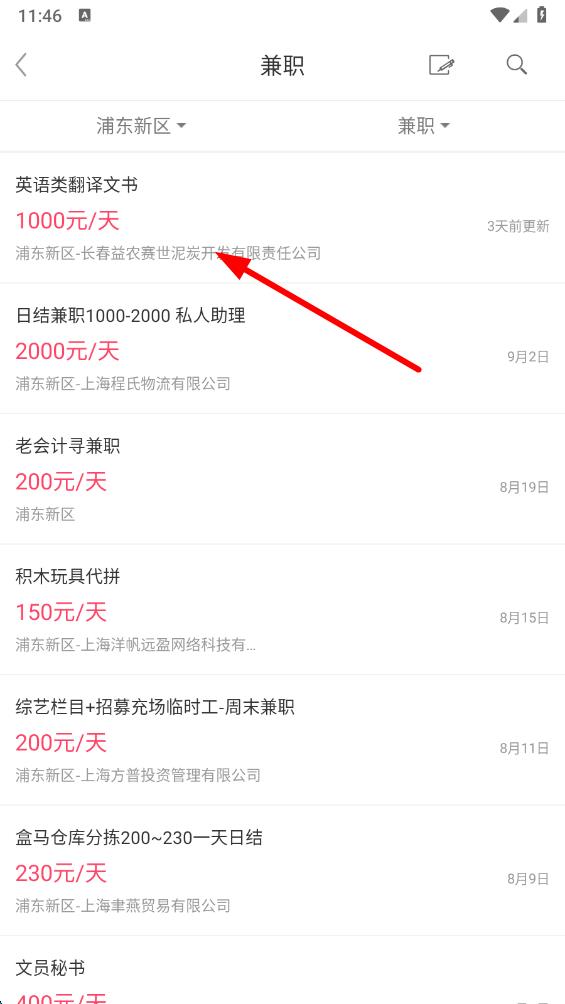 4、瀏覽篩選后的兼職崗位列表,選擇感興趣的崗位,點(diǎn)擊進(jìn)入詳情頁。