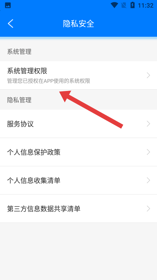 2、在隱私安全頁(yè)面,點(diǎn)擊系統(tǒng)管理權(quán)限選項(xiàng),進(jìn)入系統(tǒng)權(quán)限管理界面。