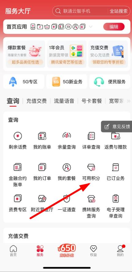 2、在服務(wù)大廳頁面的查詢分類下,點(diǎn)擊可用積分選項(xiàng)。