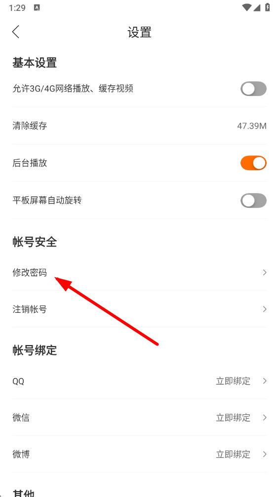 3、在設(shè)置頁面里,點擊帳號安全板塊下的修改密碼選項。