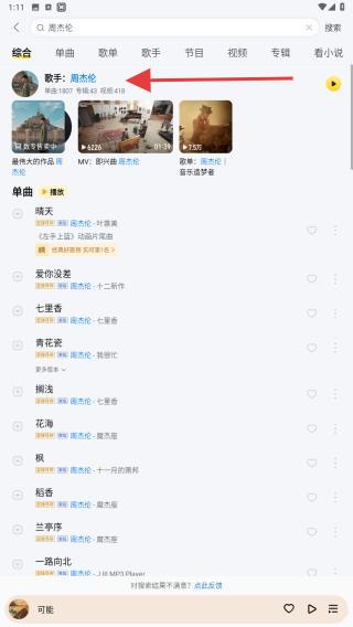 3、在搜索結(jié)果中,找到歌手的個(gè)人主頁入口,點(diǎn)擊進(jìn)入。