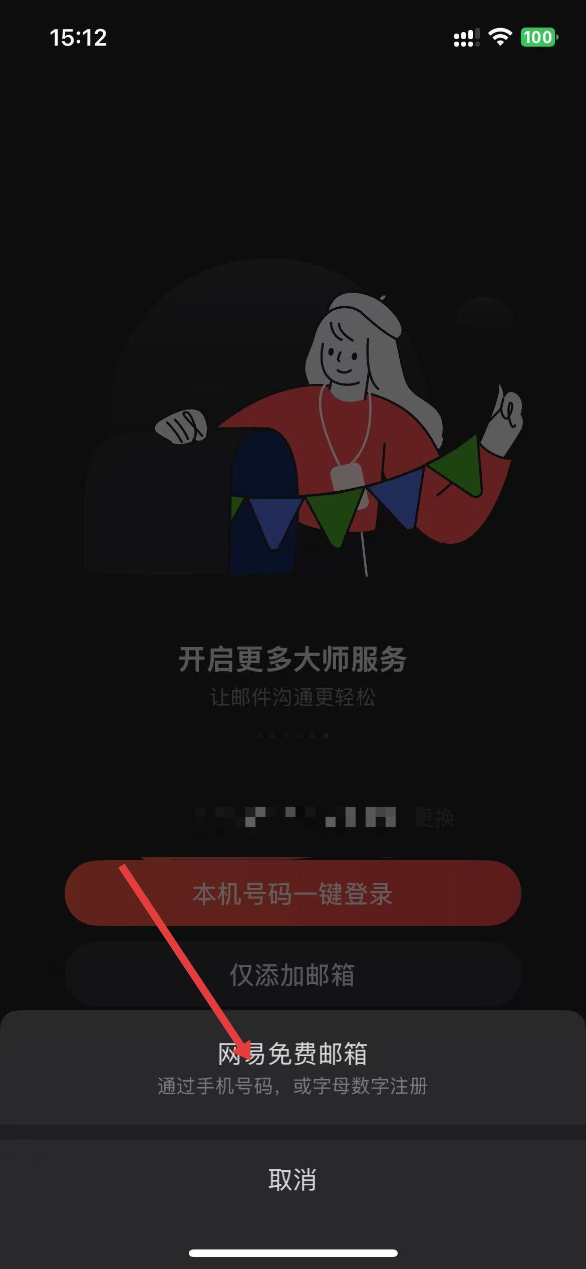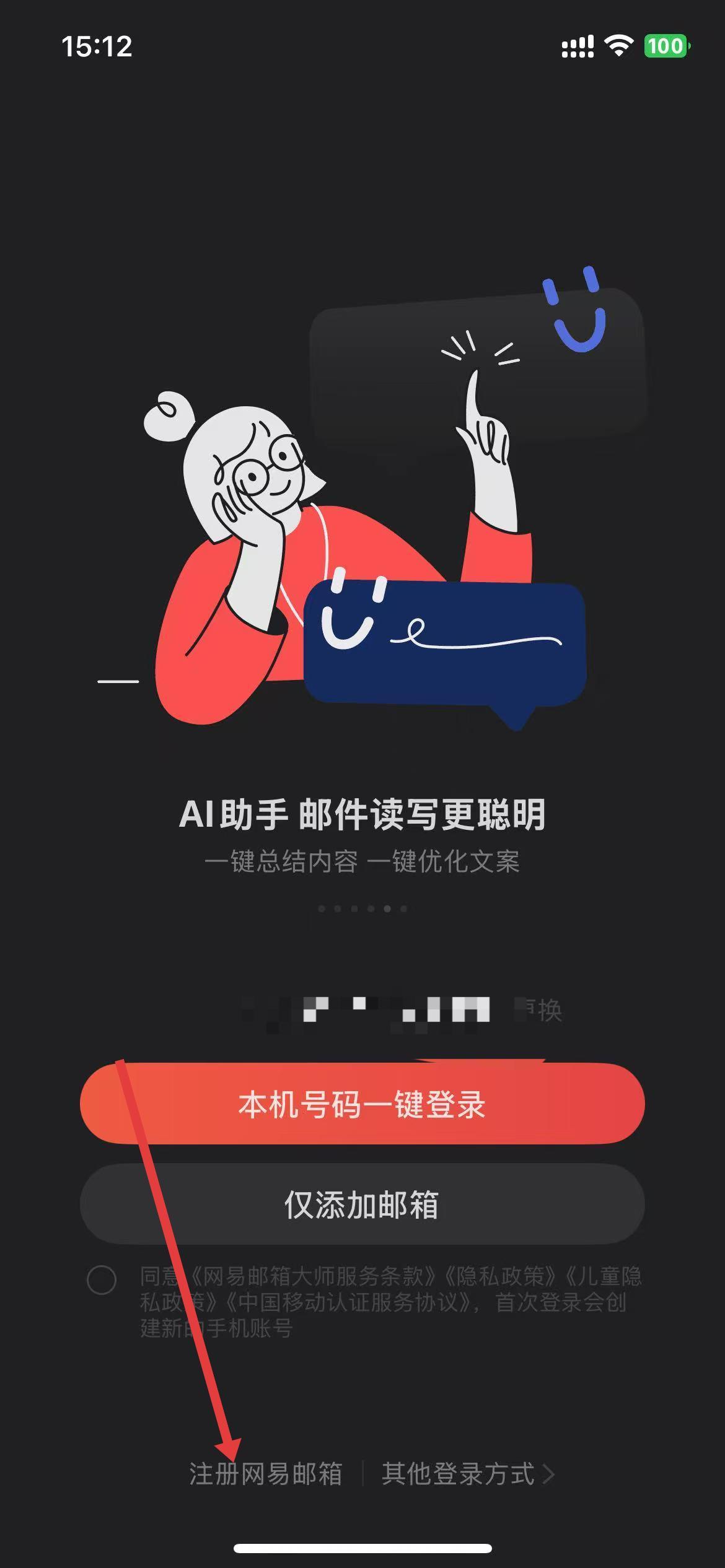 1、打開網易郵箱大師,點擊底部注冊網易郵箱。