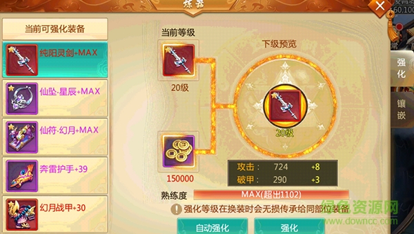 在其它游戲中,強(qiáng)化裝備要么是概率成功,要么是更換高等級(jí)裝備后需要重新強(qiáng)化,導(dǎo)致玩家浪費(fèi)大量資源在這方面,而在《青云訣》中,強(qiáng)化裝備完美解決了這兩個(gè)問題,只要熟練度滿,強(qiáng)化必然成功,而且更換新裝備后,原裝備的強(qiáng)化等級(jí)也會(huì)完美傳承給新更換的同部位裝備。