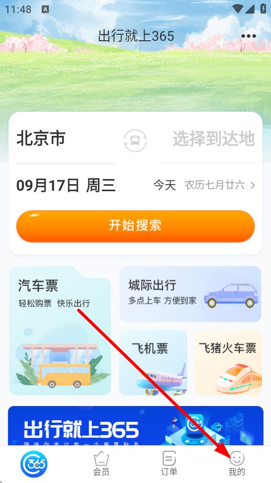 1、打開出行365 app,點擊底部導航欄中我的進入個人頁面。