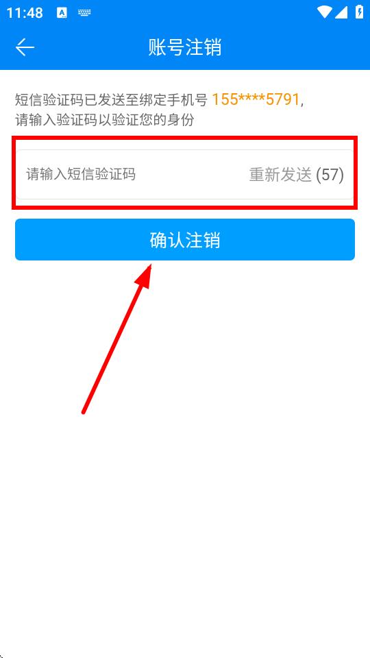 5、系統(tǒng)會發(fā)送驗證碼到綁定手機號,在對應(yīng)輸入框中輸入收到的短信驗證碼,點擊確認注銷,完成賬號注銷。