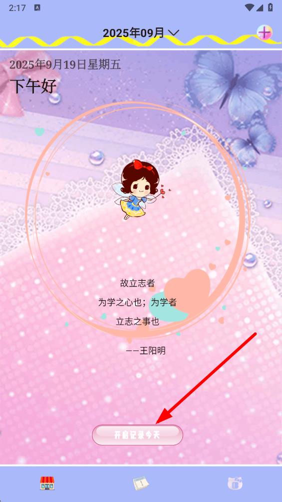 1、打開密碼日記本app,在主界面點擊開啟記錄今天按鈕,進入日記編輯頁面。