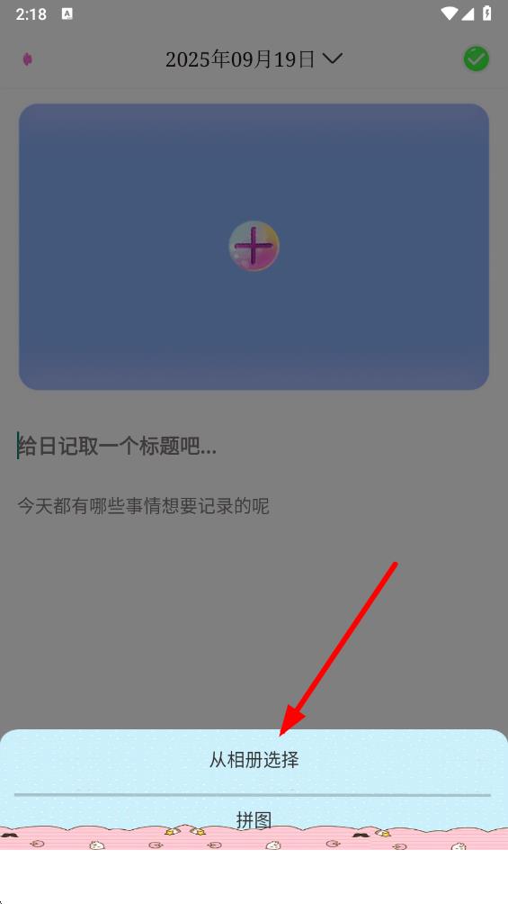 4、在手機相冊里選擇想要添加的圖片,確認選擇后,圖片就會添加到日記中。