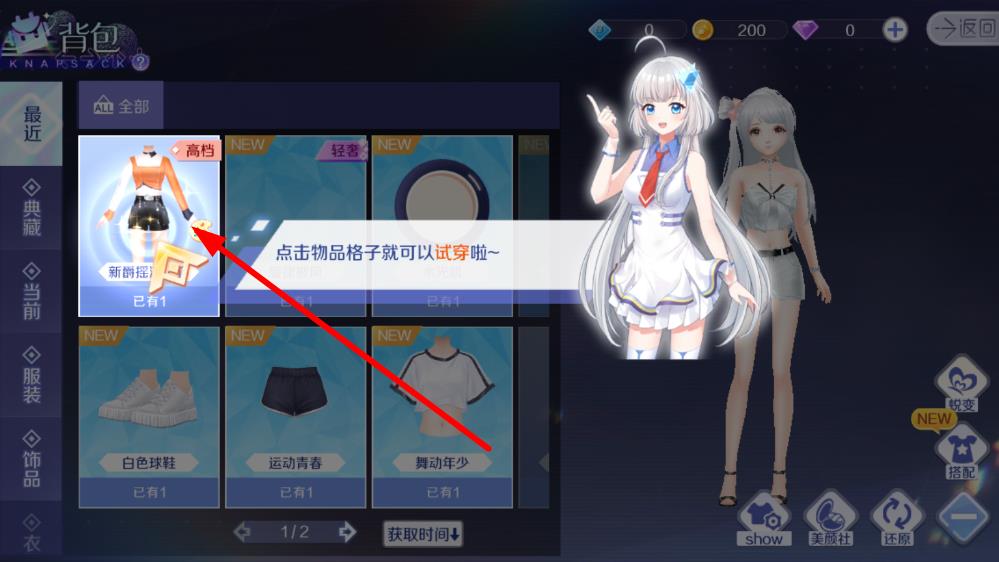 4、找到想要更換的衣服后,點(diǎn)擊物品格子進(jìn)行試穿,確認(rèn)后即可完成換衣服操作。