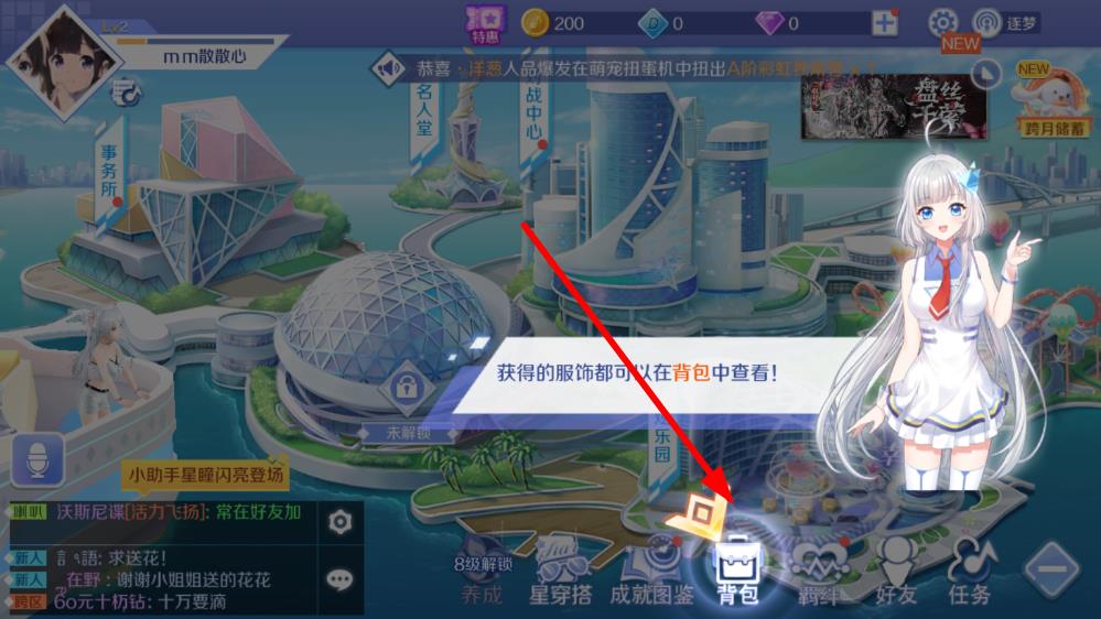 2、進(jìn)入游戲主界面后,點(diǎn)擊下方背包按鈕。