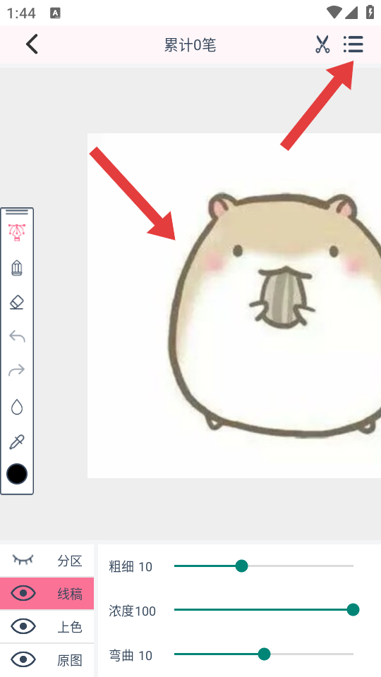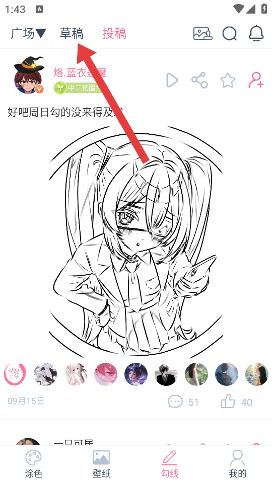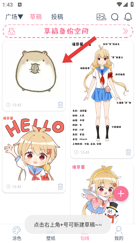 2、在草稿備份空間中,選擇需要進(jìn)行勾線的草稿作品,進(jìn)入勾線編輯界面。