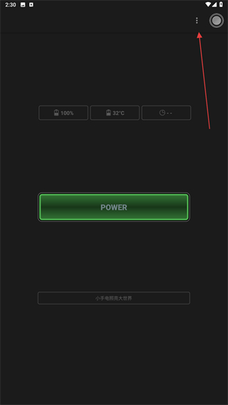 1、打開(kāi)手電筒APP,在首頁(yè)右上點(diǎn)擊三個(gè)點(diǎn)的圖標(biāo)。