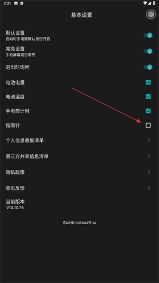 2、進(jìn)入基本設(shè)置的頁(yè)面內(nèi),找到指南針并勾選右側(cè)的框框。