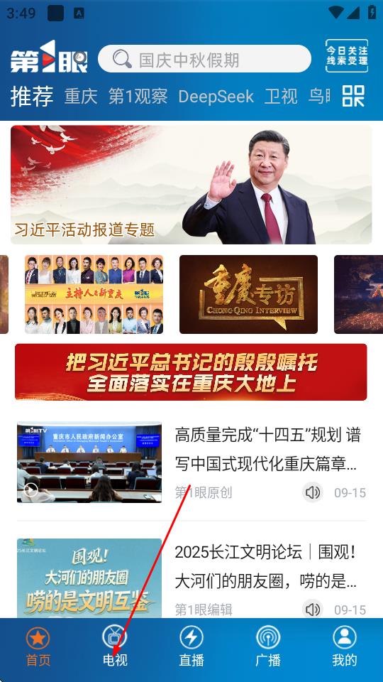1、打開第1眼新聞App,點擊底部導(dǎo)航欄電視選項。