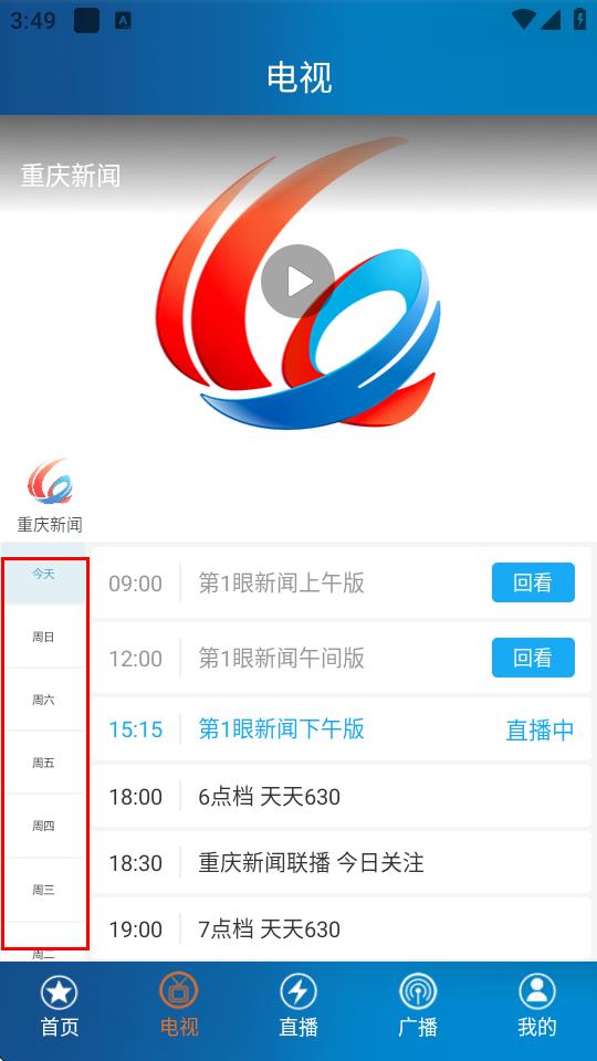 2、在電視頁面左側(cè),選擇想要查看的日期。