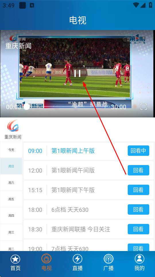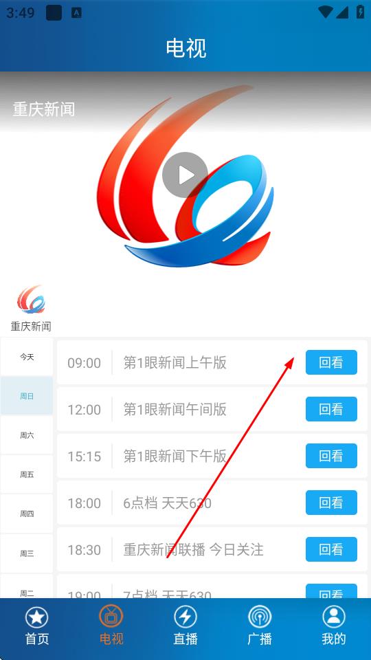 3、找到想看的電視節(jié)目,點擊節(jié)目右側(cè)回看按鈕,即可觀看節(jié)目。