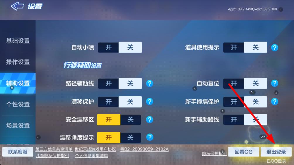 2、在設(shè)置頁面中,找到并點擊輔助設(shè)置,滑動到頁面底部,點擊退出登錄按鈕。