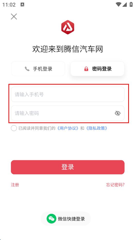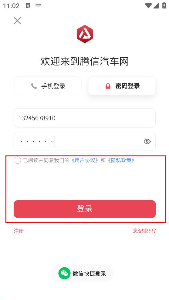 4、填寫好手機號和密碼后,勾選已閱讀并同意我們的用戶協(xié)議和隱私政策,最后點擊“登錄”按鈕,完成密碼登錄操作。