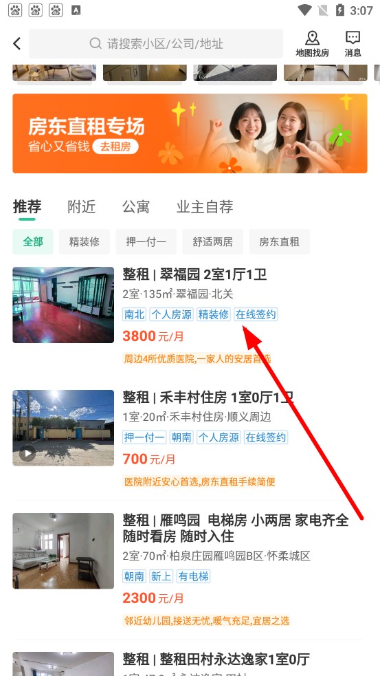 2、在租房頁(yè)面瀏覽房源列表,找到心儀的房源后,點(diǎn)擊房源標(biāo)題進(jìn)入詳情頁(yè)。