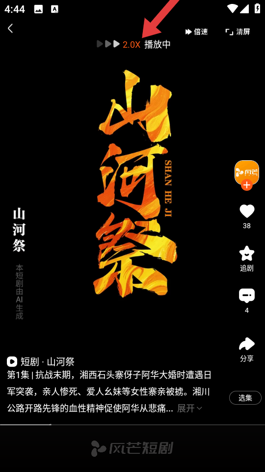 2、進(jìn)入短劇播放界面后,長按播放畫面任意的位置,可以進(jìn)入2.0x播放。
